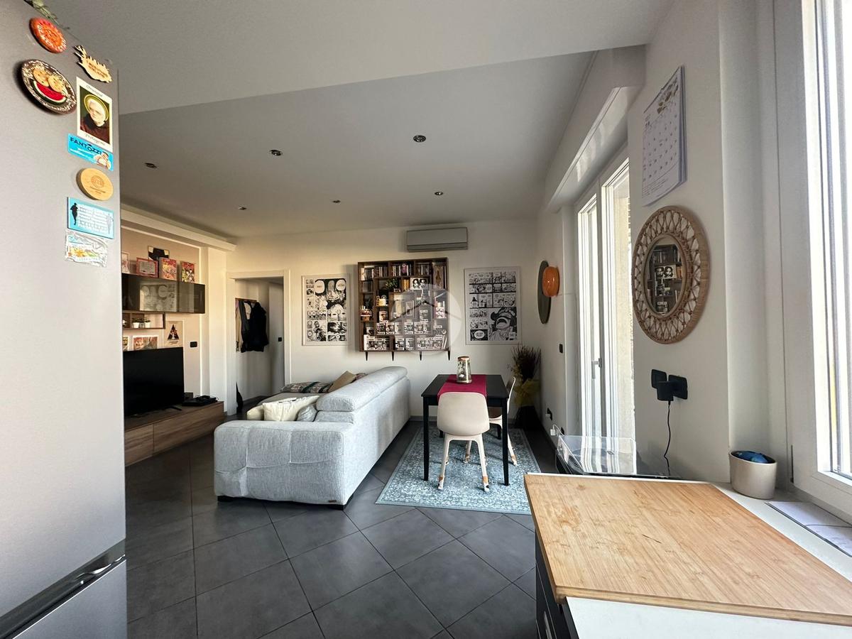 L’appartamento di circa 59 mq è ben distribuito e particolarmente luminoso. La zona giorno è composta da un accogliente soggiorno con cucina a vista e accesso diretto al balcone. La zona notte comprende una spaziosa camera matrimoniale finestrata e un bagno finestrato.