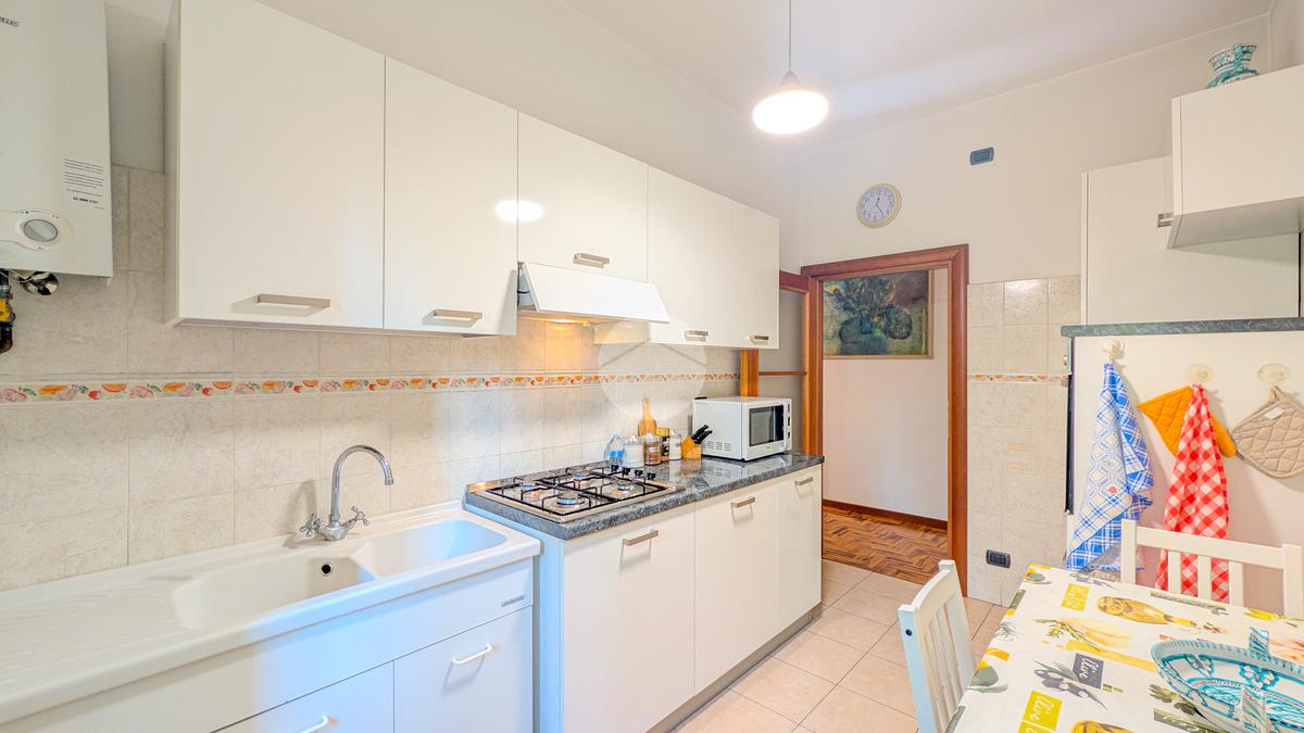 L’ingresso introduce in un luminoso soggiorno doppio di grande rappresentanza, con accesso diretto al primo balcone, perfetto per accogliere gli ospiti o godere di momenti di relax in un’atmosfera elegante e riservata. La cucina abitabile, separata ma facilmente integrabile in un open space, offre versatilità e modernità, adattandosi a diverse esigenze abitative.