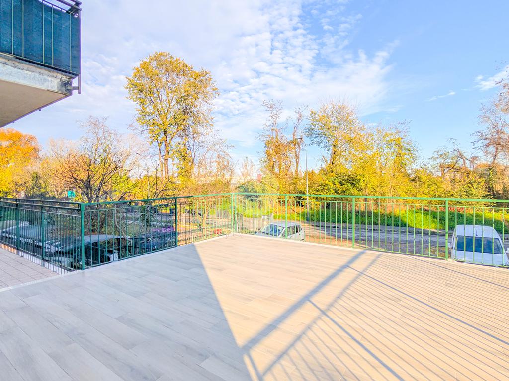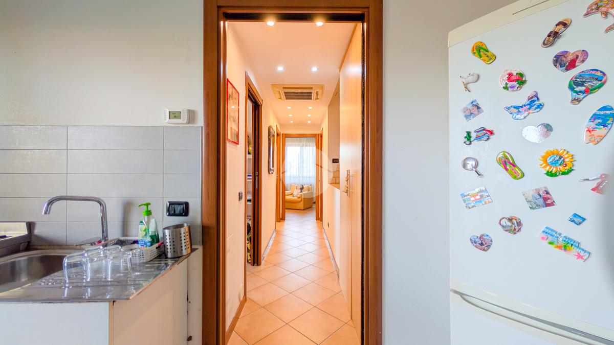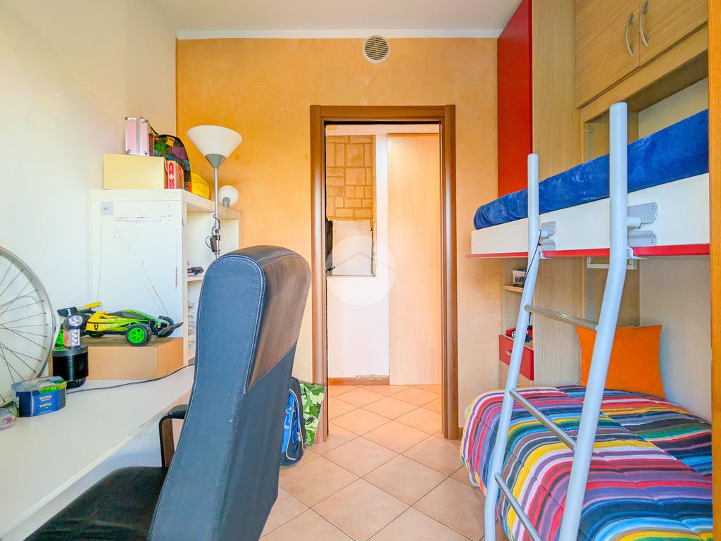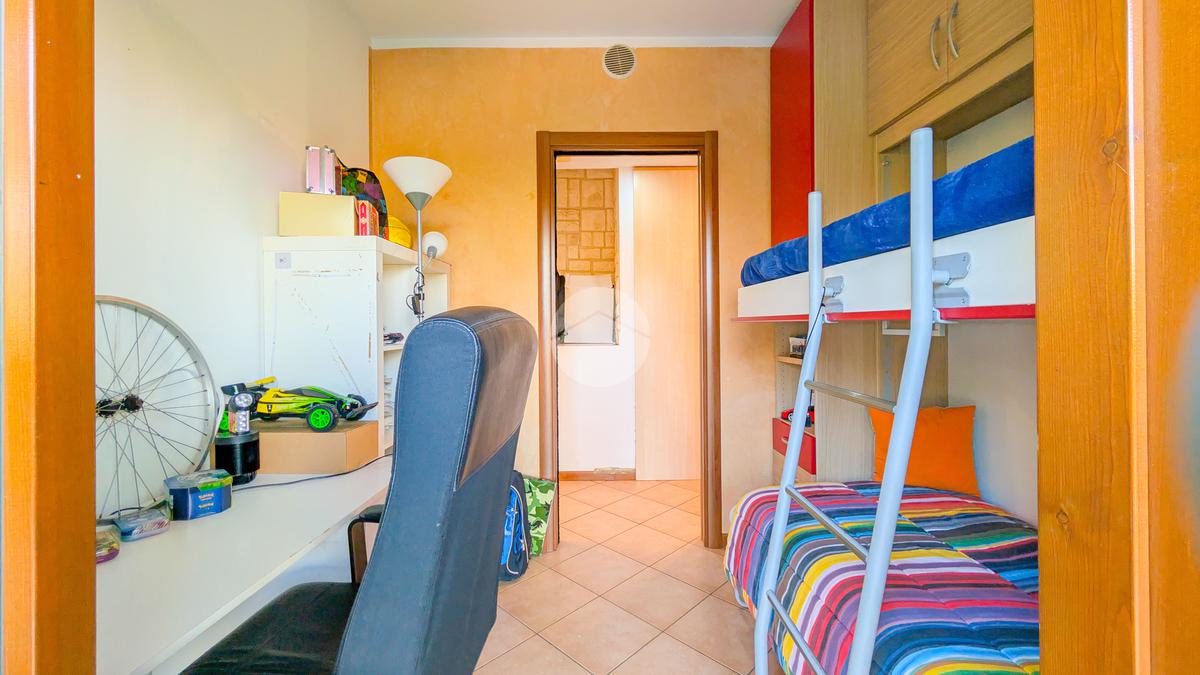 L’ingresso si apre su un luminoso soggiorno con cucina a vista, con accesso diretto a un ampio terrazzo vivibile di circa 50 mq, ideale per pranzi all’aperto e momenti di relax. Proseguendo lungo il corridoio troviamo una prima cameretta con porta finestra, anch’essa con accesso al terrazzo, un bagno finestrato con doccia e una camera matrimoniale, anch’essa luminosa e ben arieggiata.