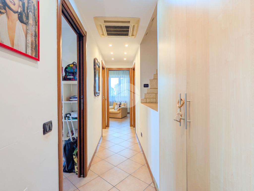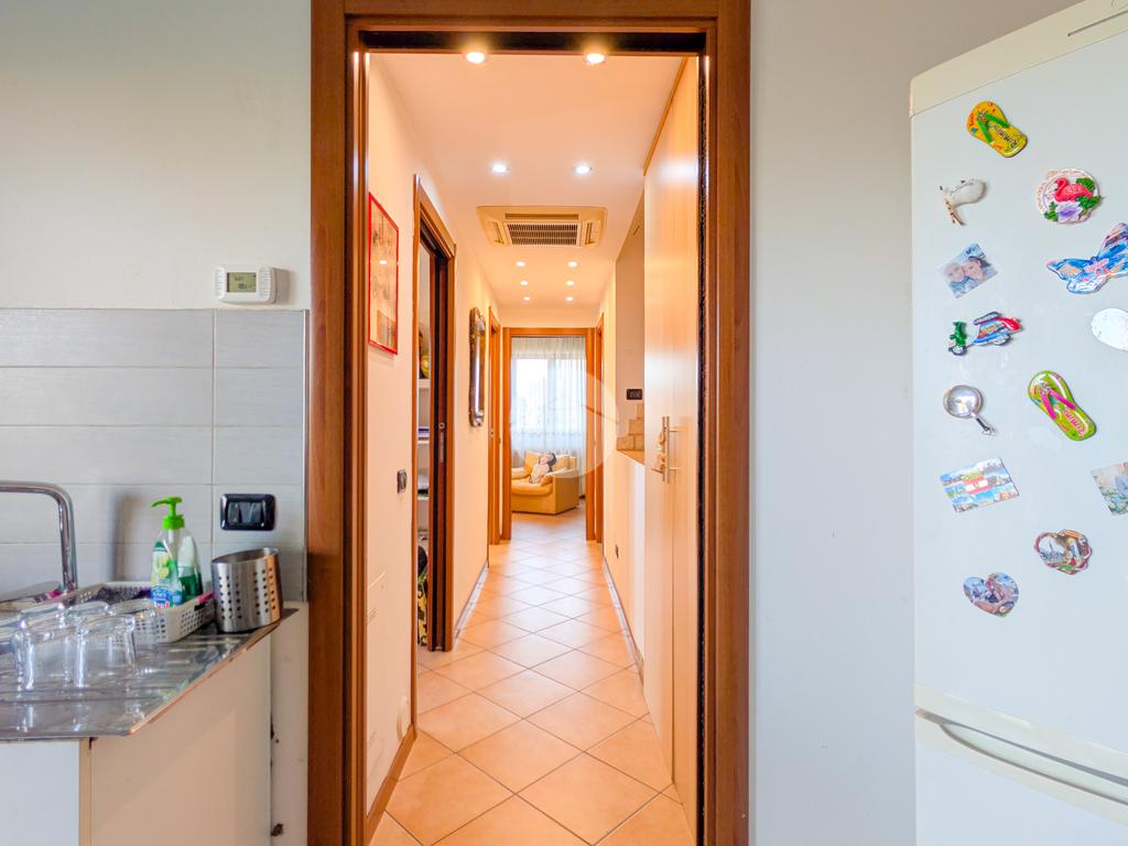 L’appartamento gode di un’ottima luminosità naturale e presenta dotazioni moderne: doppi vetri, tapparelle elettriche, porta blindata, videocitofono e l’aria condizionata.