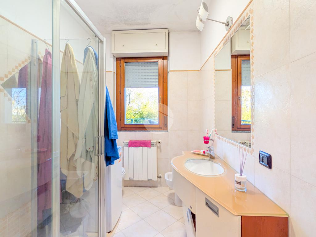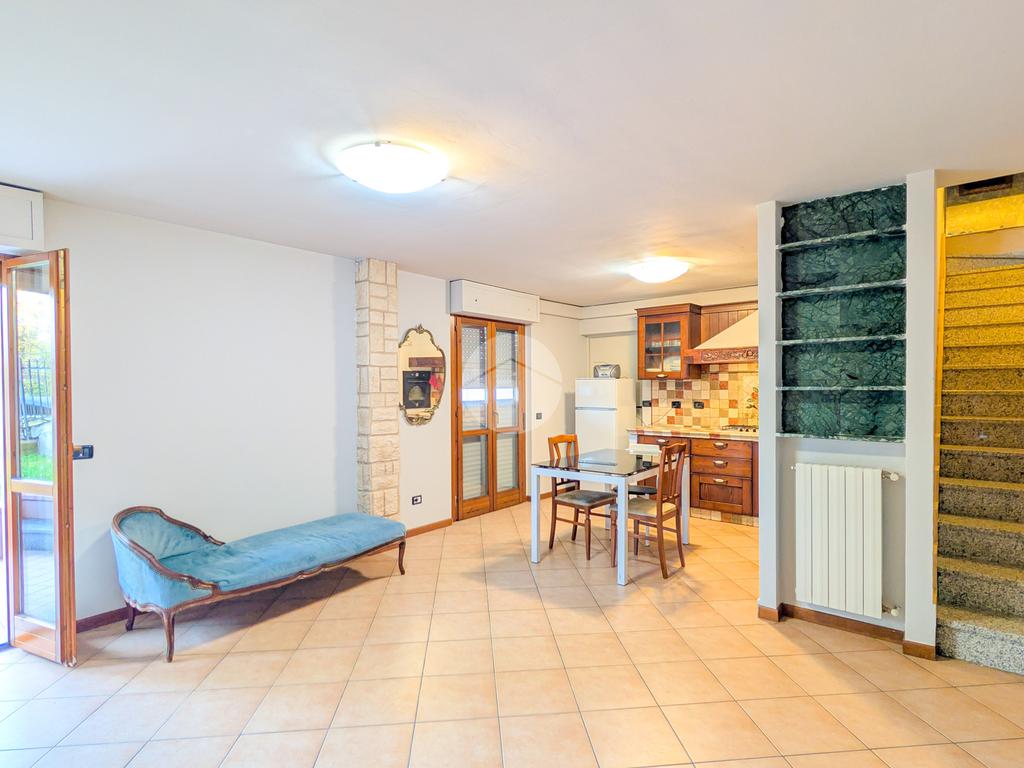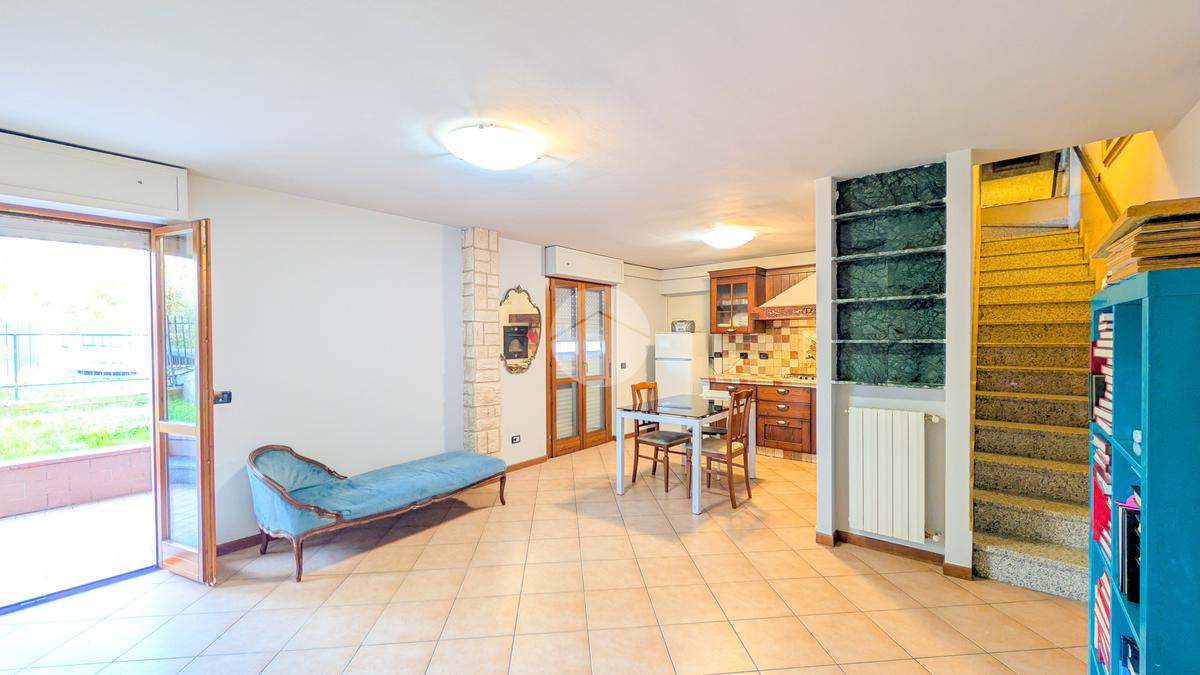 Una scala interna conduce alla spaziosa taverna, perfetta come sala hobby, studio, area home theatre o spazio per gli ospiti. Sullo stesso livello si trova una lavanderia e due porte finestre che conducono al giardino privato di circa 50 mq, ideale per chi ama gli spazi aperti o ha animali domestici.