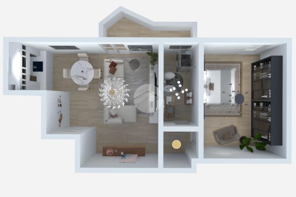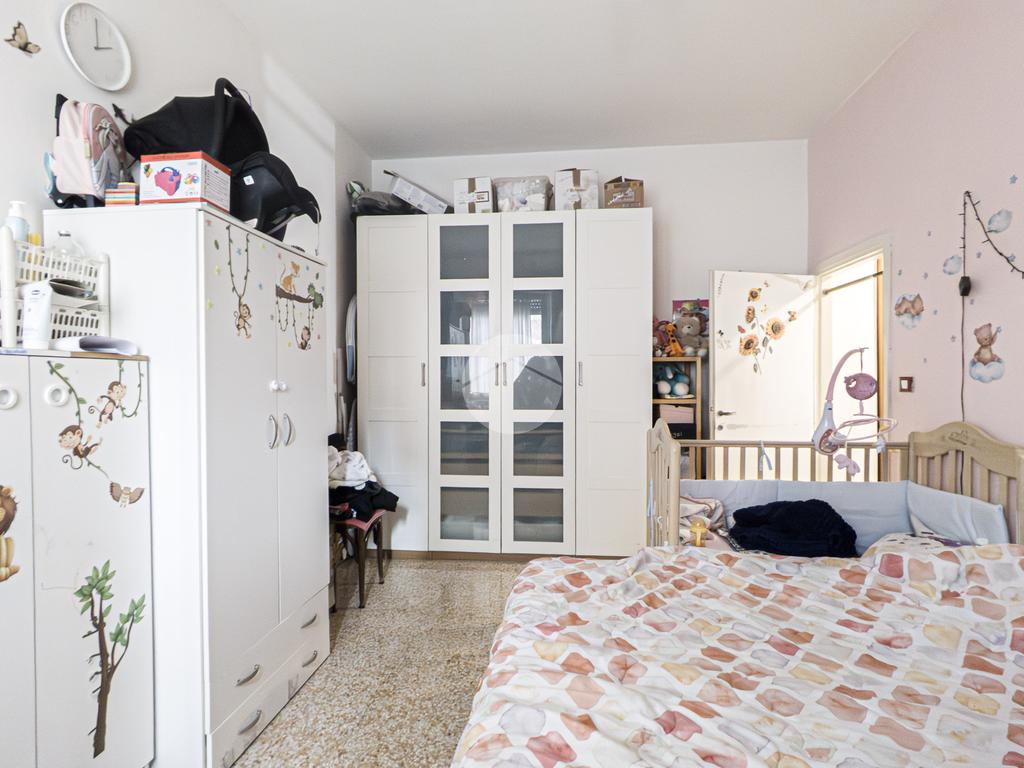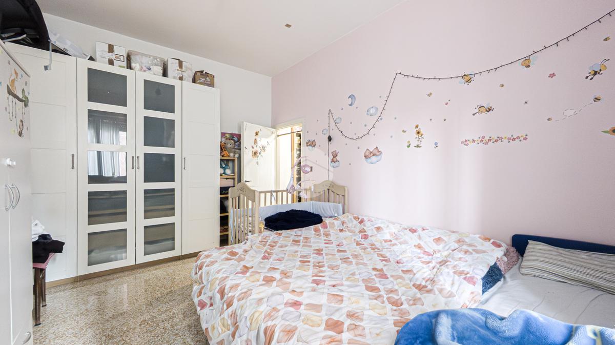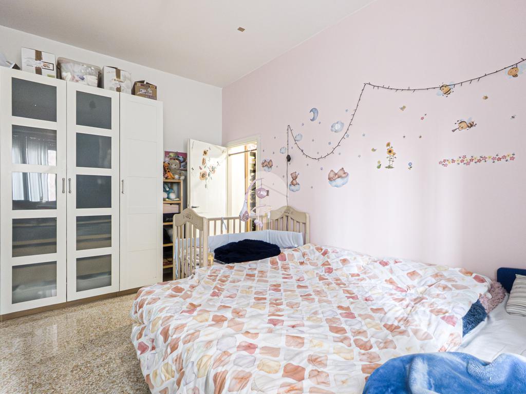La zona notte ospita una grande camera matrimoniale, ben illuminata e caratterizzata da un’atmosfera ariosa e tranquilla. Il bagno, finestrato e dotato di vasca, è pensato per garantire comodità e funzionalità.