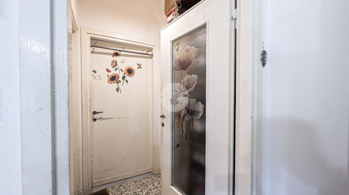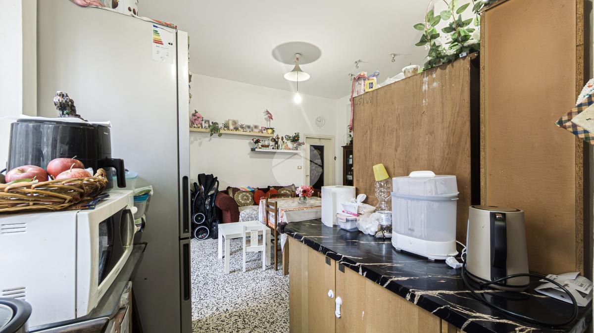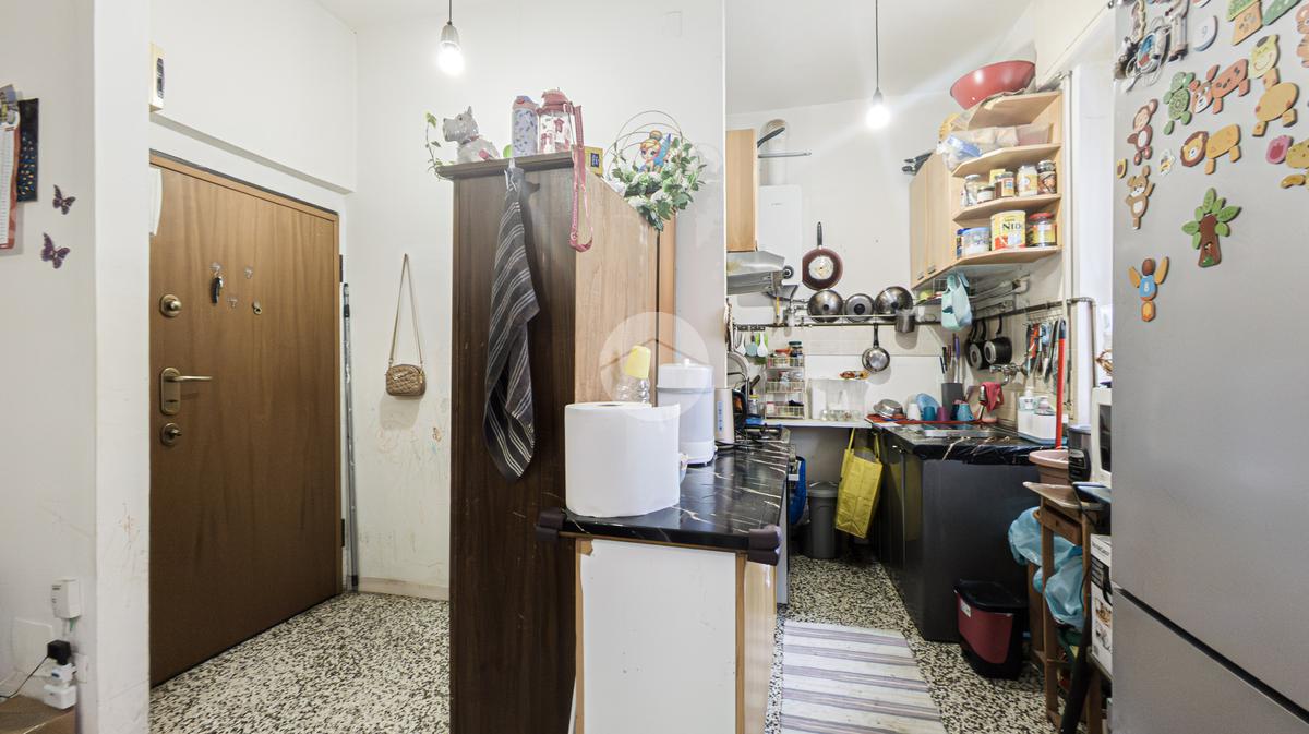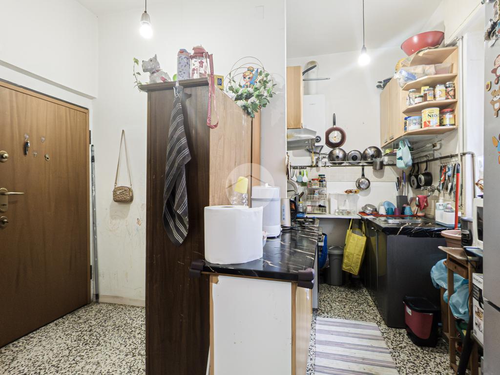 L’ingresso si apre su un pratico disimpegno che conduce alla zona living, composta da soggiorno con cucina a vista. Da qui si accede al balcone abitabile, perfetto per godersi momenti di relax all’aperto. La cucina, semplice e funzionale, offre ampie possibilità di personalizzazione secondo le proprie esigenze.