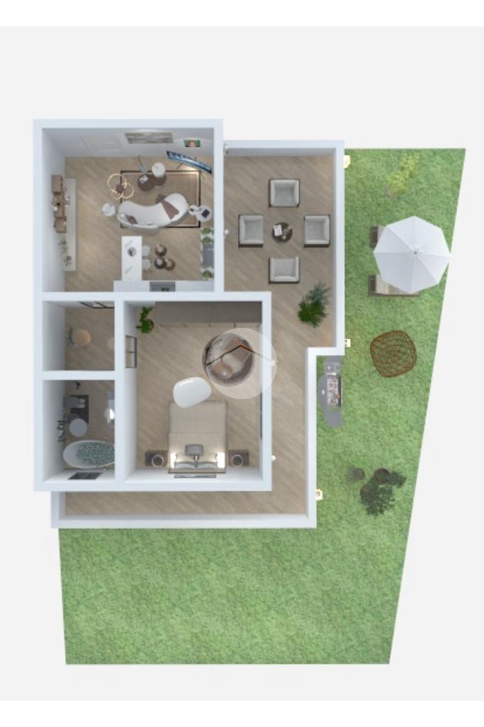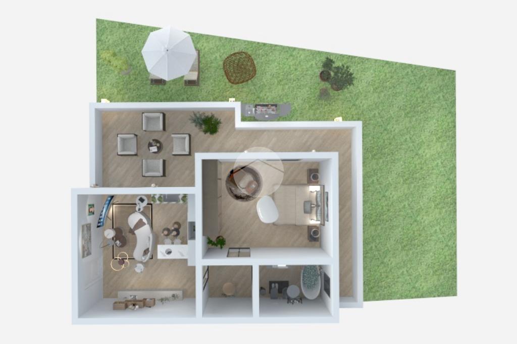 La disposizione degli spazi è razionale e funzionale: l’ingresso si apre su un accogliente soggiorno con cucina a vista, dal quale si accede direttamente al giardino, ideale per momenti di relax all’aperto, pranzi o cene in compagnia. Un comodo disimpegno conduce alla zona notte, composta da un bagno finestrato e da una camera matrimoniale, anch’essa finestrata, silenziosa e ben esposta, perfetta per garantire un riposo rigenerante. Le porte scorrevoli ottimizzano gli spazi e donano un tocco di modernità all’ambiente.